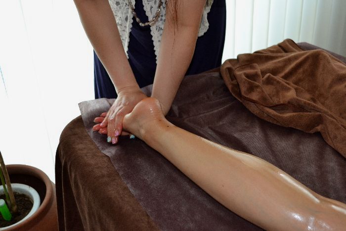 精油を植物油で希釈したトリートメントオイルで、経絡の流れに沿ってツボを刺激し、リンパの流れを促すリラクゼーションを目的としたマッサージです。